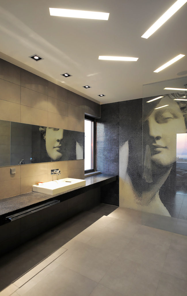 Στο ισόγειο υπάρχει το κυρίως καθιστικό και το καθημερινό με την κουζίνα και το λουτρό ξένων, βεστιάριο και ανεξάρτητο χώρο γραφείου.