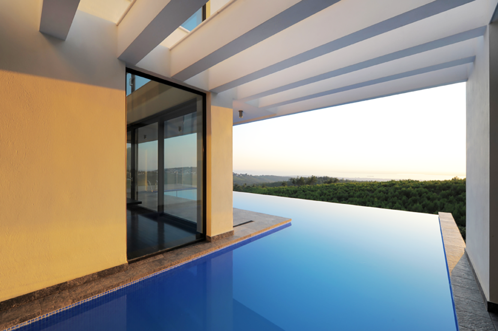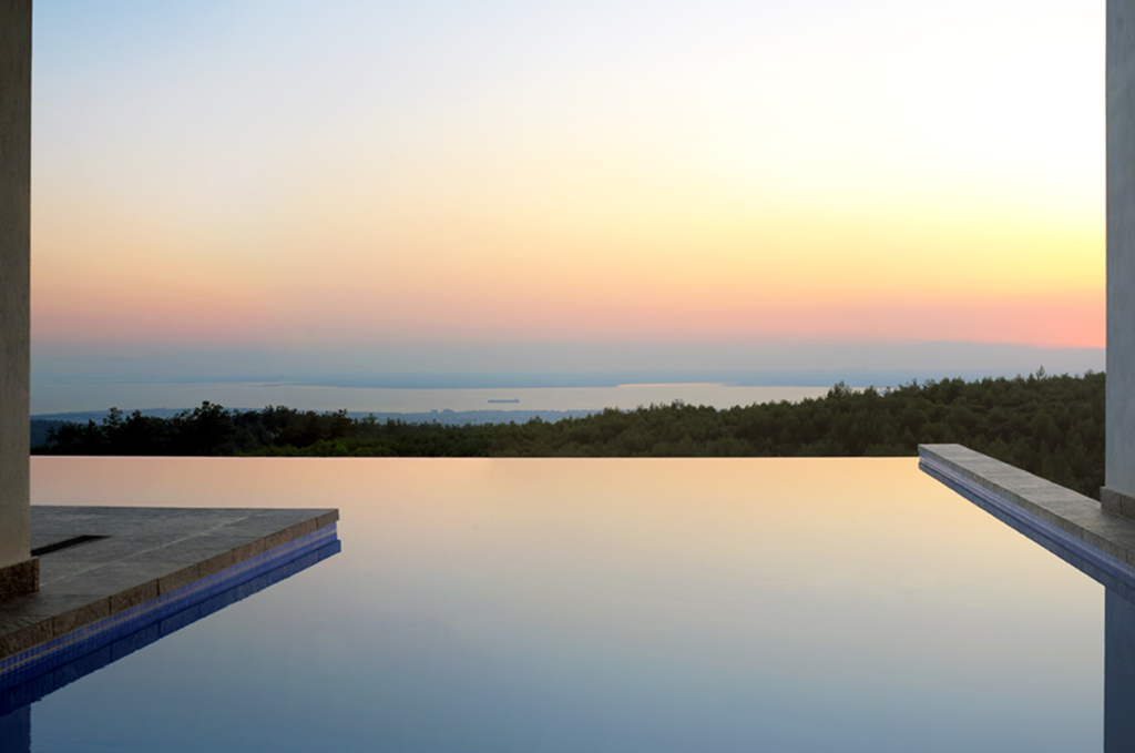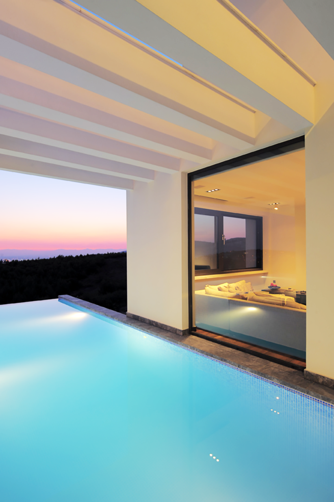 Επίσης στον εξωτερικό χώρο υπάρχει πισίνα υπερχείλησης και χώρος ψησταριάς με τραπεζαρία.